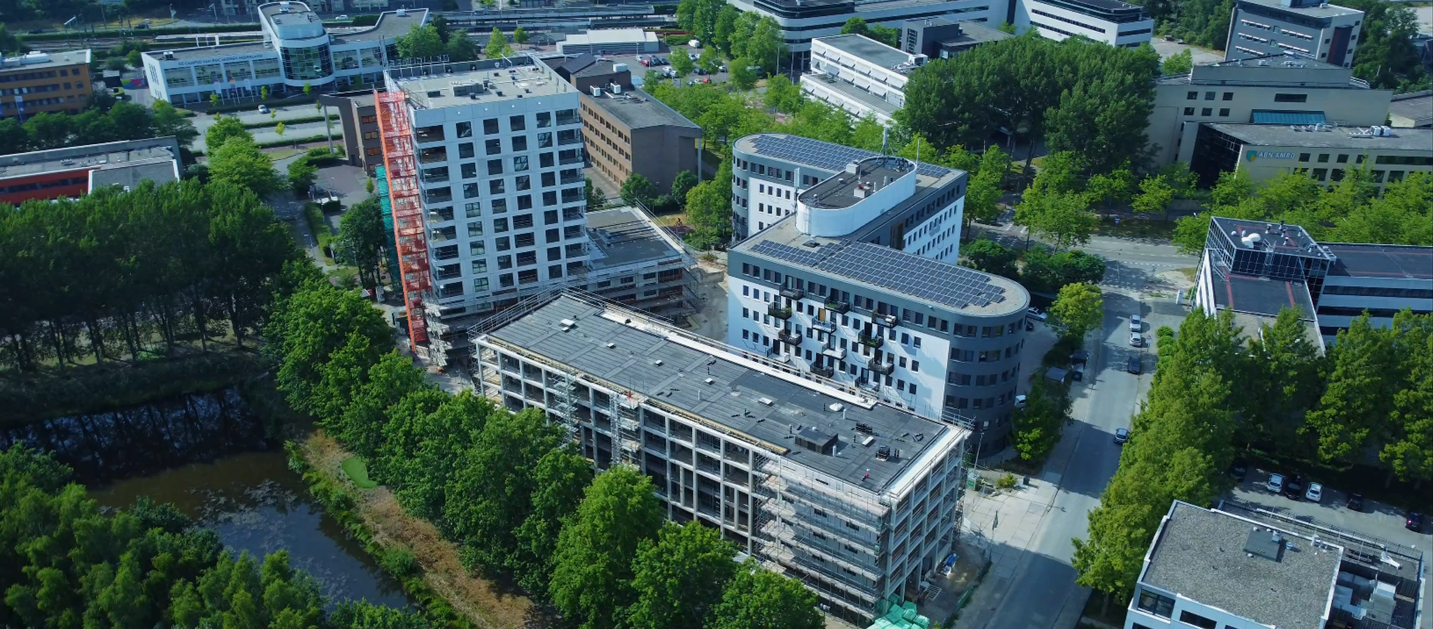 Ook afgelopen maand hebben we weer een dronevideo laten maken van de voortgang vanaf de bouwplaats van De Lichtpen in Amersfoort. Zo is te zien dat de bouw van gebouw B in volle gang is en de eerste 2 verdiepingen staan. De drone is zelfs even naar binnen gevlogen! Wat is het toch een prachtige groene omgeving. Dat is echt heel mooi zichtbaar nu de bomen weer vol in hun blad staan. En wat het uitzicht vanaf het hoge gebouw A is? Ook dit heeft de drone vanuit birdseye op de gevoelige plaat vastgelegd. Bekijk nu de bouwupdate-video van mei.
